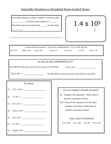 Scientific Notation To Standard Form Guided Notes Teaching Resources