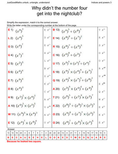 Collect a Joke - Number Loving. Once youve moved onto fractional and negative indices theres loads more excellent resources these might be useful in Year 12 too. Menu Skip to content.